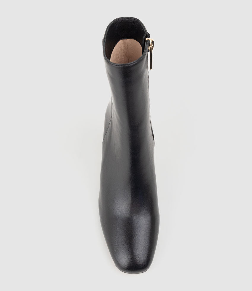 Meet the XADIA85 by Filippo Raphael for Edward Meller. A modern ankle boot crafted in smooth leather or soft suede, defined by its sleek square toe and sculptural 85 mm block heel. The clean lines create a refined, versatile silhouette that moves effortlessly from day to night. A cushioned PORON insole and full leather lining provide comfort and support with every step.