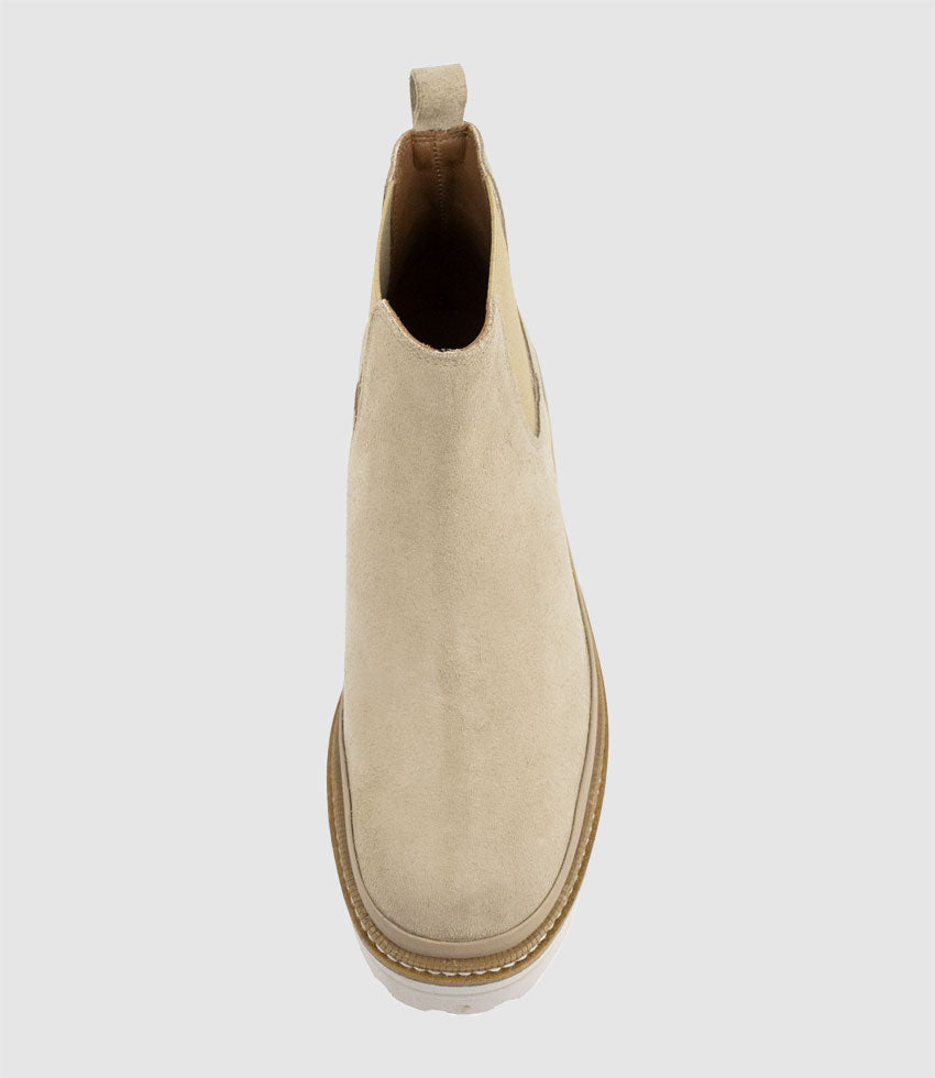 Remove all dust and dirt trapped on your suede La Canadienne footwear. Gently clean with a damp or dry brush. Repeat as necessary. Leave to air dry. If there are any scuff marks on your suede footwear, you can remove them with a gum eraser. Gently rub the scuff with the eraser and wipe away the debris.