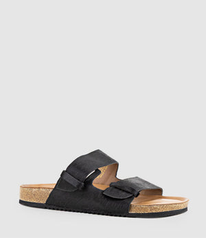 KLEIN Two Strap Slide in Black Pony Hair