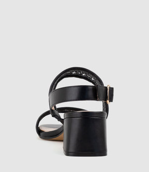 The SIMONE50 by Filippo Raphael for Edward Meller is a refined take on a timeless sandal silhouette. Expertly crafted in China, this style features two front straps with a woven texture that adds dimension and detail. A supportive 50 mm block heel offers just the right amount of lift, while the buckle-fastening back strap ensures a secure fit. With a cushioned insole and full leather lining, the SIMONE50 balances comfort and style, perfect for day-to-night summer dressing.