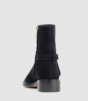 WOAD30 Block Heel Ankle Boot in Black Suede