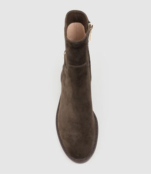 WOAD30 Block Heel Ankle Boot in Chocolate Suede