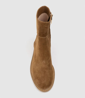 WOAD30 Block Heel Ankle Boot in Tan Suede