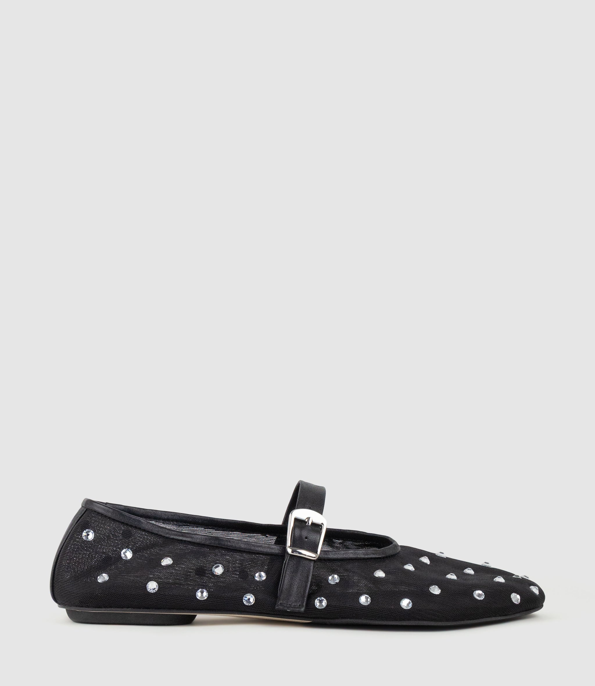 ELMIRA Mesh Ballet with Crystals in Black