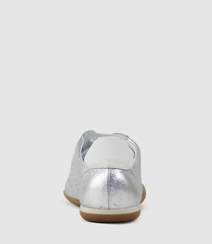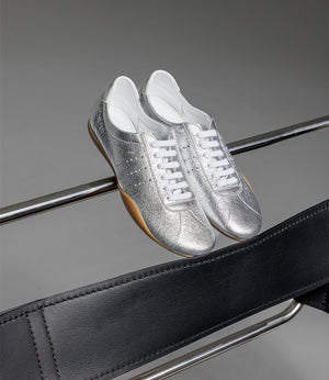 Metallic Leather is a delicate material; it is created by bonding a metallic foil with the underlying leather. To maintain the quality of the product, avoid contact with abrasive surfaces. If the foiling is scratched or scuffed, it will expose the leather underneath. Item can be wiped with a microfibre damp cloth but rub gently to avoid scuffing the metallic finish.