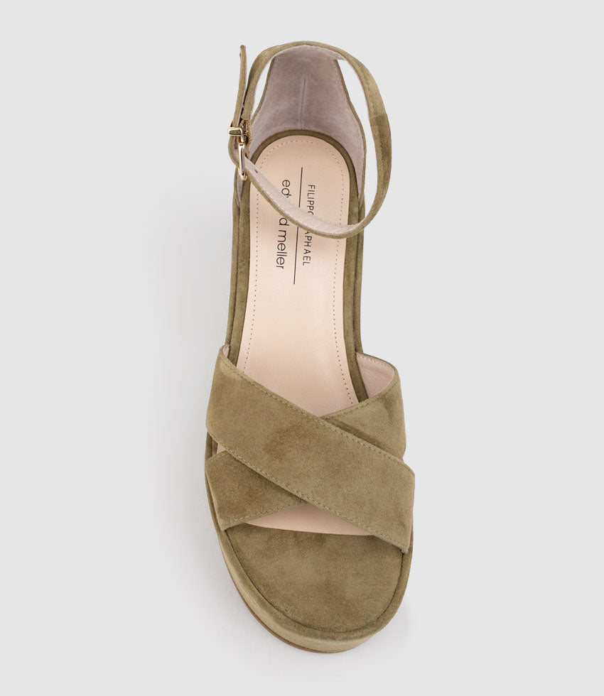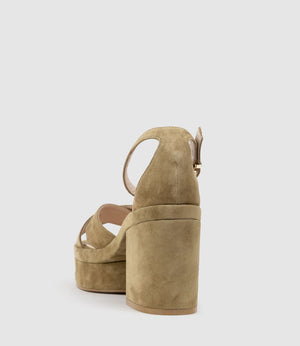 RETRO90 Exaggerated Platform Sandal in Camel Suede