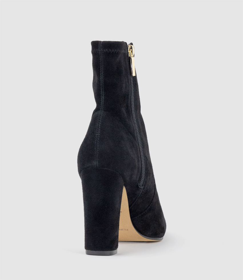 ZENYA100 Block Heel Sock Boot in Black Suede