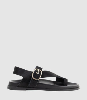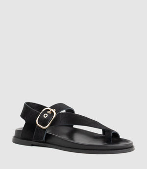 The TALE sandal by Filippo Raphael for Edward Meller is a modern take on the classic thong silhouette. Crafted from leather, it features an asymmetrical strap design and an adjustable buckle for a secure fit. Set on a contoured sole that supports the natural shape of the foot, this casual style offers comfort and ease for everyday wear.
