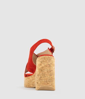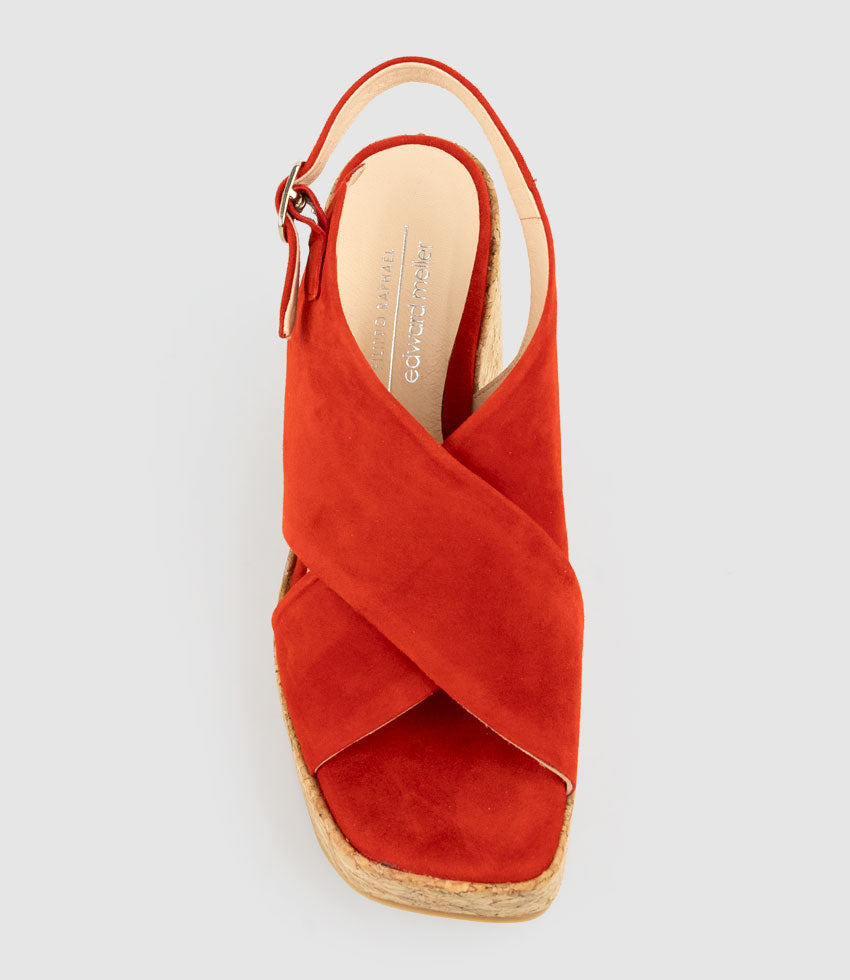 LATINE Crossover Sandal on Cork Unit in Red Suede