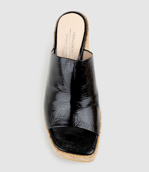 LAVERN Slide on Cork Unit in Black Crinkle Patent