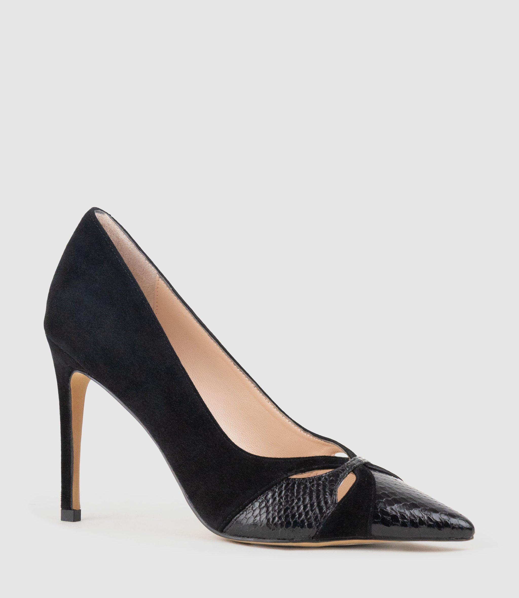 - Suede and snakeskin upper