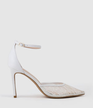 Introducing the ALICE100 by Filippo Raphael for Edward Meller, a striking pump that blends elegance with edge. Set on soaring 100 mm stiletto heels, this style features a pointed toe and a delicate lace-up front for added allure. Buckle-fastening ankle straps ensure a secure and flattering fit, making these heels a standout choice for evenings or occasions that call for confidence and sophistication.