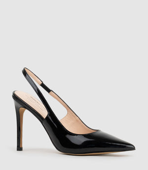 ANDREA100 Stiletto Slingback Pump in Black Patent