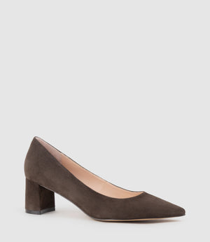 BETA55 Block Heel Pump in Chocolate Suede