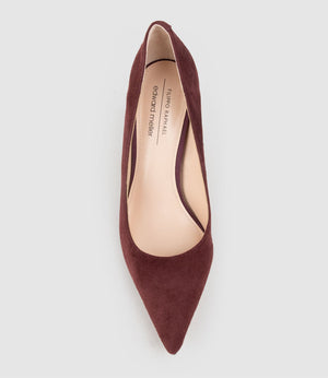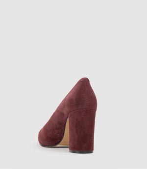 BRYNLEY85 Block Heel Pointed Pump in Wine Suede