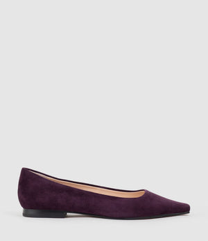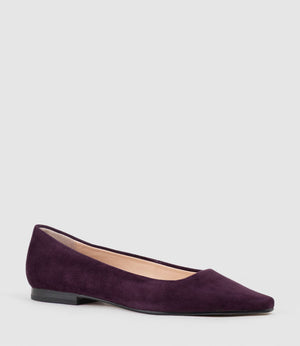 ELVY Chiselled Flat Pump in Eggplant Suede