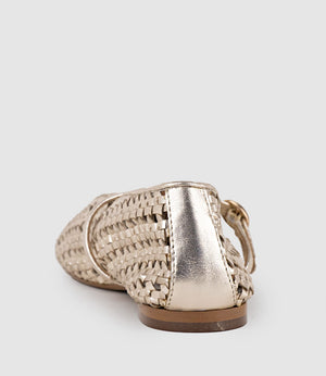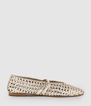 The FALIN ballet flat by Filippo Raphael for Edward Meller is a refined take on warm-weather dressing. Crafted with a woven leather upper and finished with a smooth leather lining, this flat is set on a low heel for all day comfort. A slim, adjustable strap with buckle closure ensures a secure fit, while the breathable construction makes it the perfect choice for versatile summer styling.