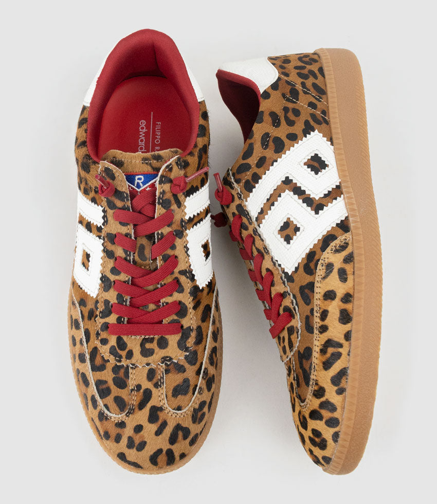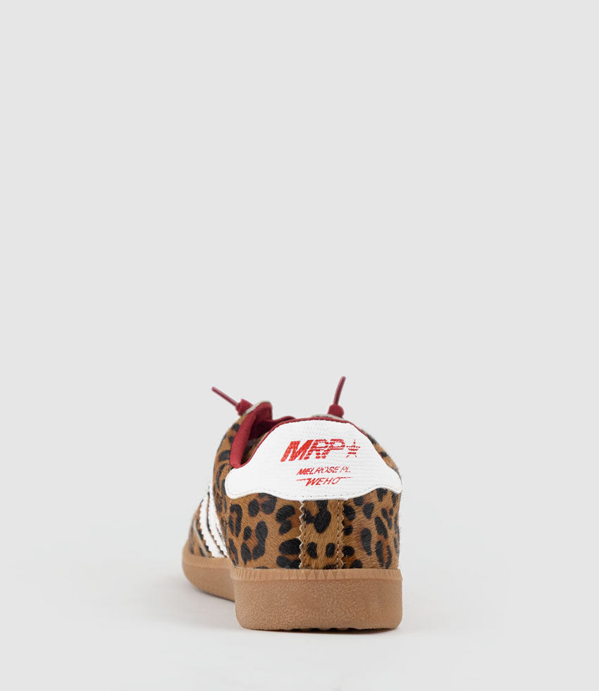 This style is crafted from a combination of leather and suede. Leather can be gently cleaned with a damp cloth and quality leather cleaner, which should be spot-tested before use. Suede leather is delicately textured and requires gentle brushing with a suede brush or sponge to maintain the nap of fibres. Avoid contact with water, oil or harsh elements. Light coloured soles can be cleaned with a specialised sneaker cleaner to keep them looking fresh and bright. Store in a cool, dry place inside a dust bag or shoebox to maintain its appearance.