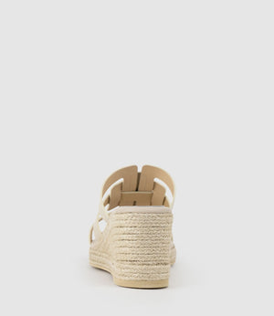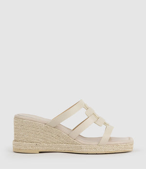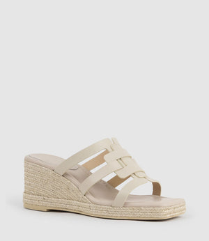 Effortlessly chic, the MADERE slide by Filippo Raphael for Edward Meller blends craftsmanship and comfort in a timeless summer silhouette. Handcrafted in Spain, it features an interwoven upper of smooth leather and an easy slip-on design. A jute-wrapped mid-height wedge heel adds a natural lift while maintaining laid-back appeal. Ideal for warm weather days, MADERE is a versatile choice for both casual and elevated looks.
