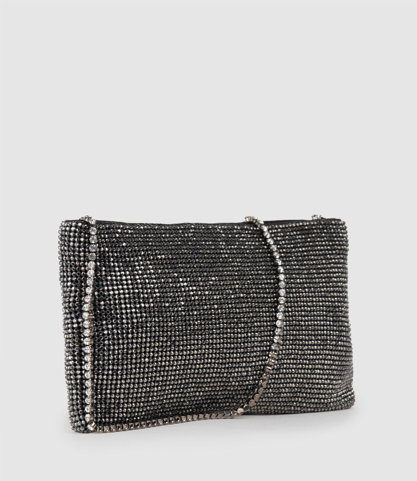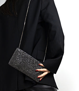 Accentuate your style with the NAOMI crossbody bag, part of the Platinum Collection by Filippo Raphael for Edward Meller. Available in glistening crystals or shimmery mesh, this bag captivates with its radiant sparkle. The diamante strap offers versatility, allowing you to drape it over one shoulder or wear it crossbody. Despite its compact size, the interior provides ample space for your essentials, seamlessly combining fashion and function.