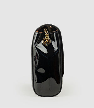 Patent leather is a delicate material created by coating leather with a layer of lacquer to produce a shiny finish. To maintain the quality of shoes, avoid contact with abrasive surfaces. Care should be taken with patent leather, as it is porous and can absorb darker colours. Therefore, to prevent colour transfer, store them separately in a dust bag or the box provided. Shoes can be wiped with a damp microfibre cloth but rub gently to avoid scuffing the finish.