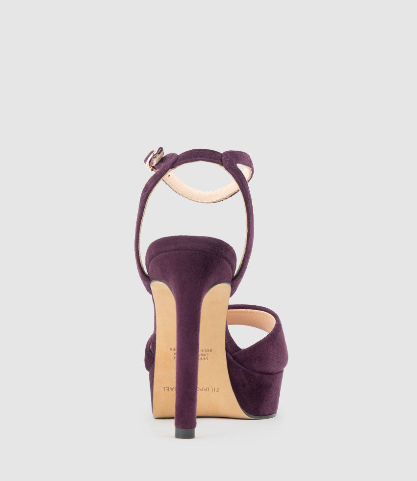 SELMA110 Open Toe Platform Sandal in Eggplant Suede