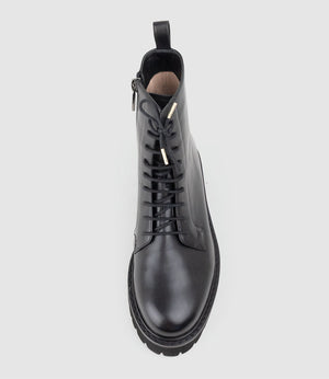 Discover the UTHER by Filippo Raphael for Edward Meller. A modern ankle boot that blends the edge of a combat style with the polish of a dress boot. Crafted from silky calf leather, this lace-up design features a round toe and chunky sole, offering versatility and presence. A cushioned insole of durable PORON and full leather lining ensures comfort for all-day wear.