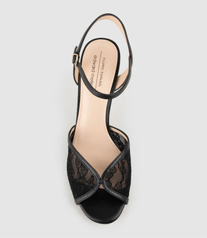 The VARIAN85 by Filippo Raphael for the Platinum Collection by Edward Meller is an elegant blend of texture and sophistication. Expertly crafted in China, this graceful sandal features smooth leather paired with delicate lace detailing, creating a soft tulip-front silhouette that flatters the foot. Set on a slim 85 mm heel, the VARIAN85 delivers refined height and timeless appeal. A cushioned insole and full leather lining ensure comfort without compromising on glamour - perfect for evening events and elevated occasions.
